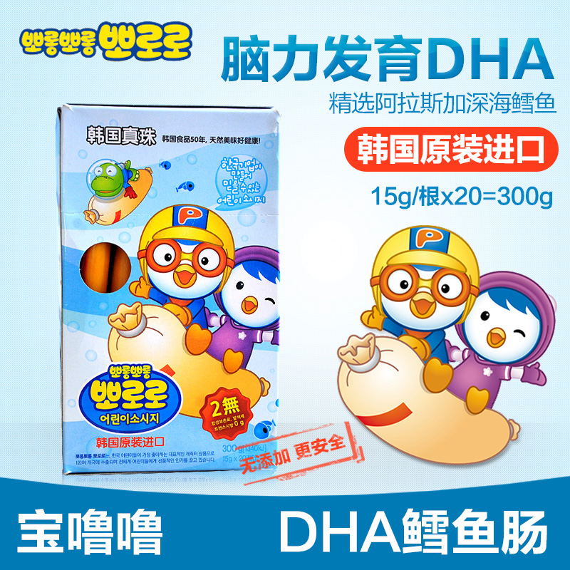 韩国宝露露pororo零食宝噜噜DHA宝宝鳕鱼肠宝宝鱼肠15g*20支/盒