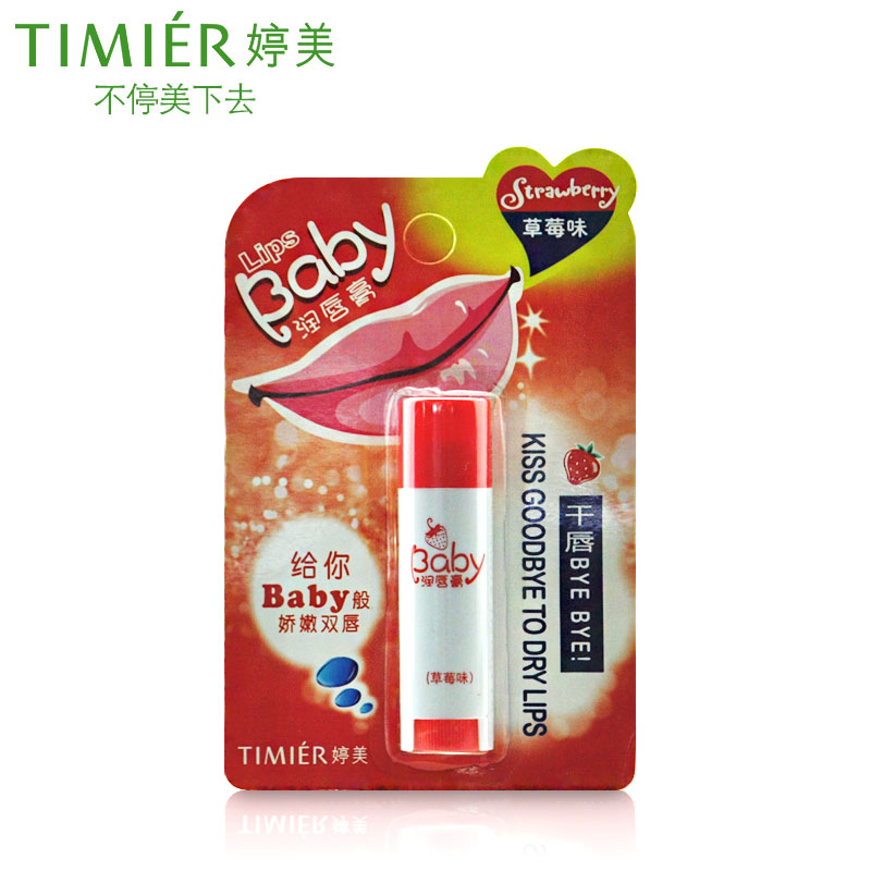 婷美LIPS BABY润唇膏草莓味保湿无色持久滋润补水红润双唇男女