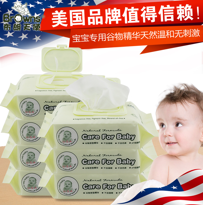 布朗天使婴儿童宝宝手口湿巾纸婴儿湿巾专用湿纸巾带盖80抽7包