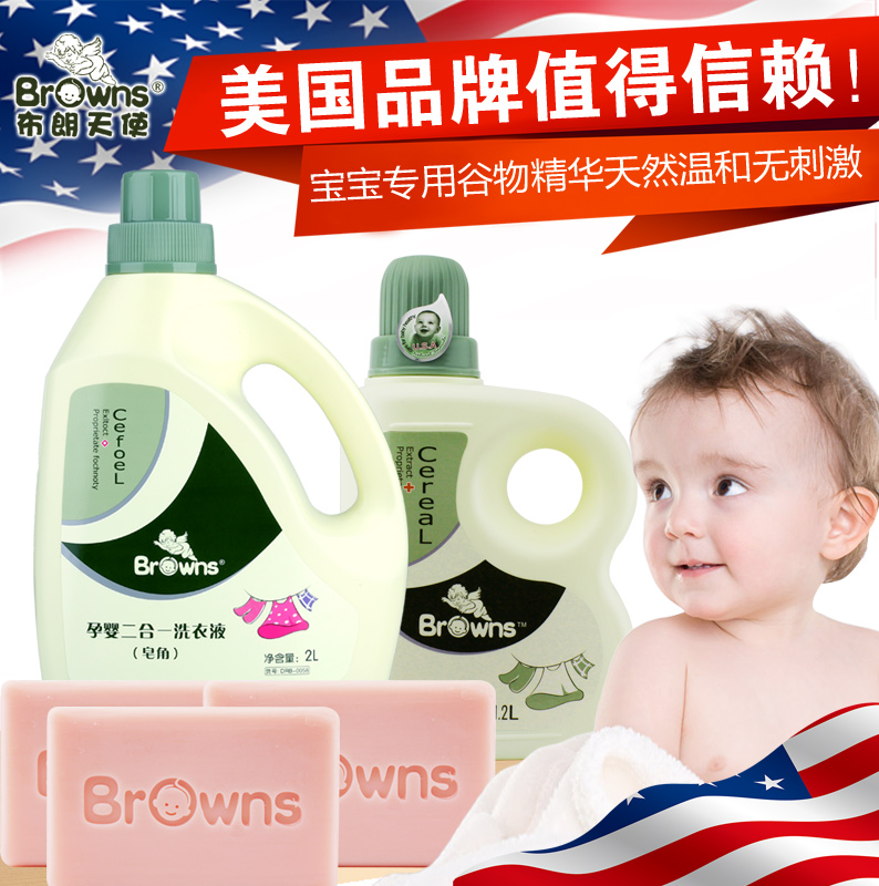 布朗天使孕婴多效皂角洗衣液2.0L套衣物柔顺剂1.2L洗衣皂200g*3块