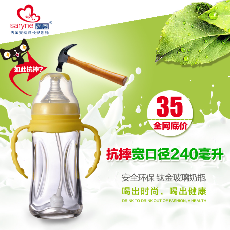 尚恩玻璃奶瓶宽口径 新生儿 硅胶吸管奶瓶婴儿奶瓶玻璃防爆防摔