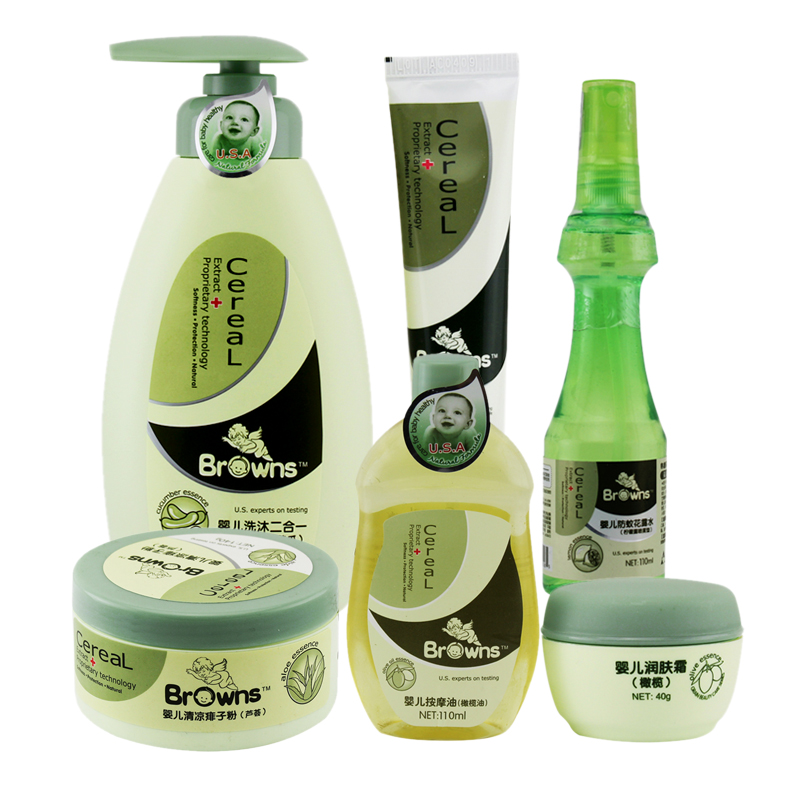 布朗天使婴儿洗浴套装婴儿面霜儿童沐浴露婴儿痱子粉防蚊花露水