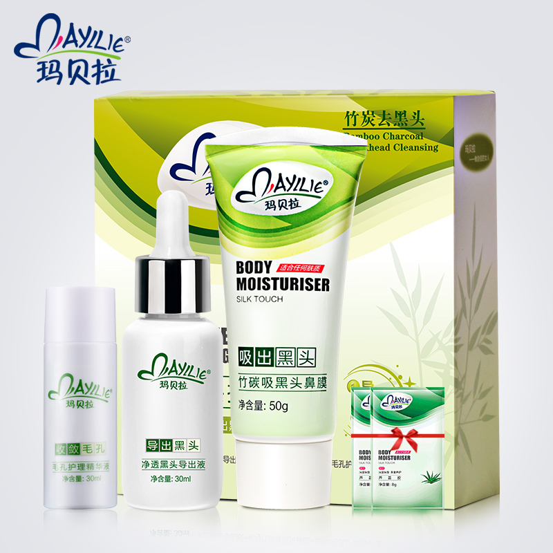 玛贝拉去黑头收缩毛孔套装 黑头导出液深层清洁粉刺鼻贴鼻膜 男女
