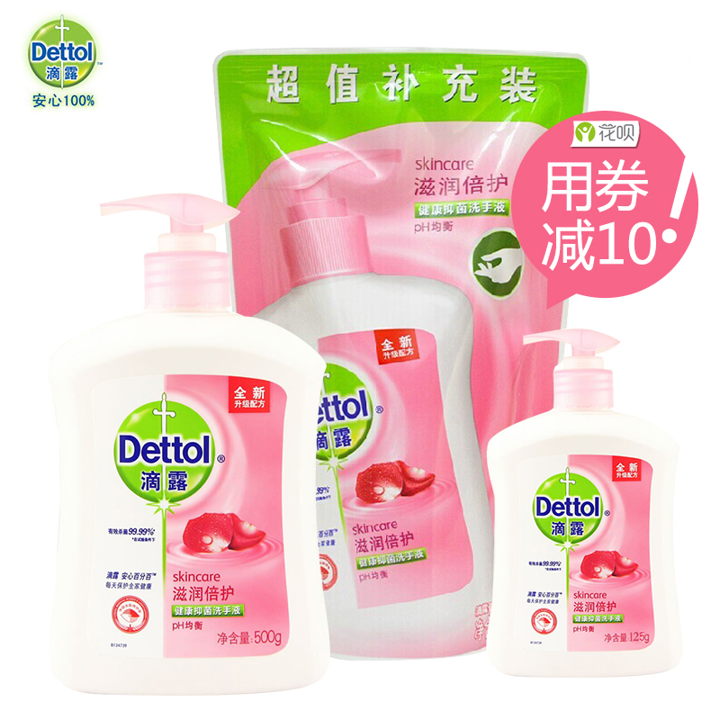 滴露健康抑菌洗手液滋润倍护500+300+125g优惠袋装