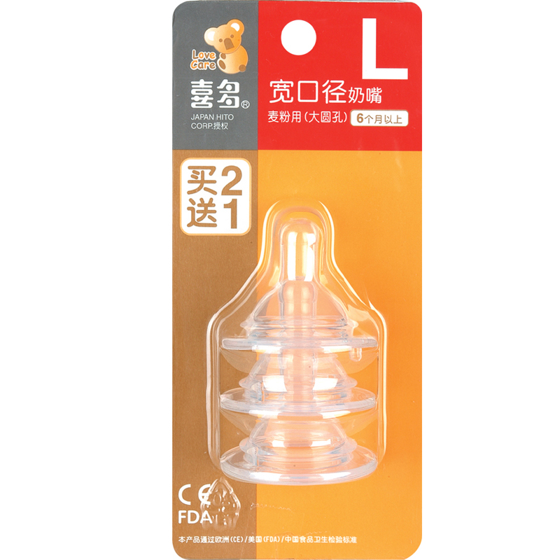 材质:硅胶 品牌:HITO/喜多 口径大小:宽口径 奶嘴品类:奶嘴(单卖) 适用年龄:6个月以上 流速:快 孔型:大圆孔 包装种类:3个装 商品条形码:6931589152610 货号:H115029 查看全文