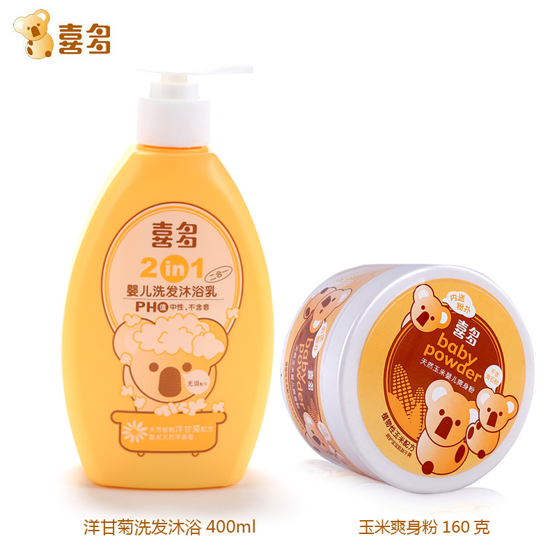 喜多婴儿呵护特惠装(玉米爽身粉160G+洋甘菊洗发沐浴二合一400ML)