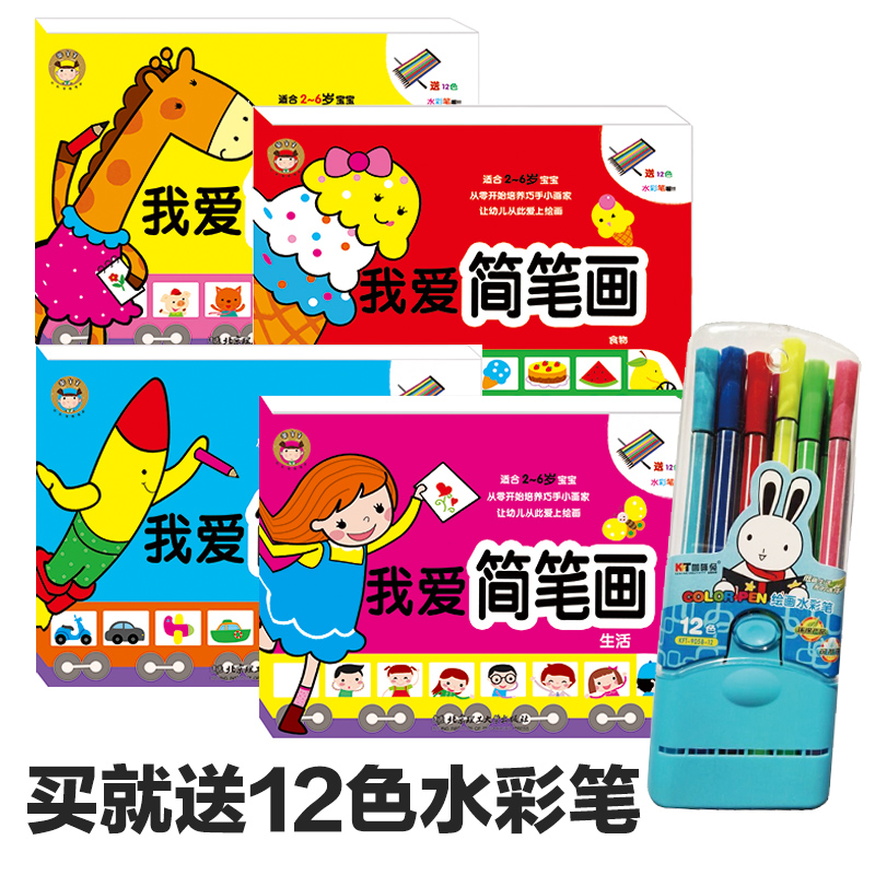 宝宝涂色画书我爱简笔画 2-6岁 幼儿涂色书儿童简笔画二合一四册