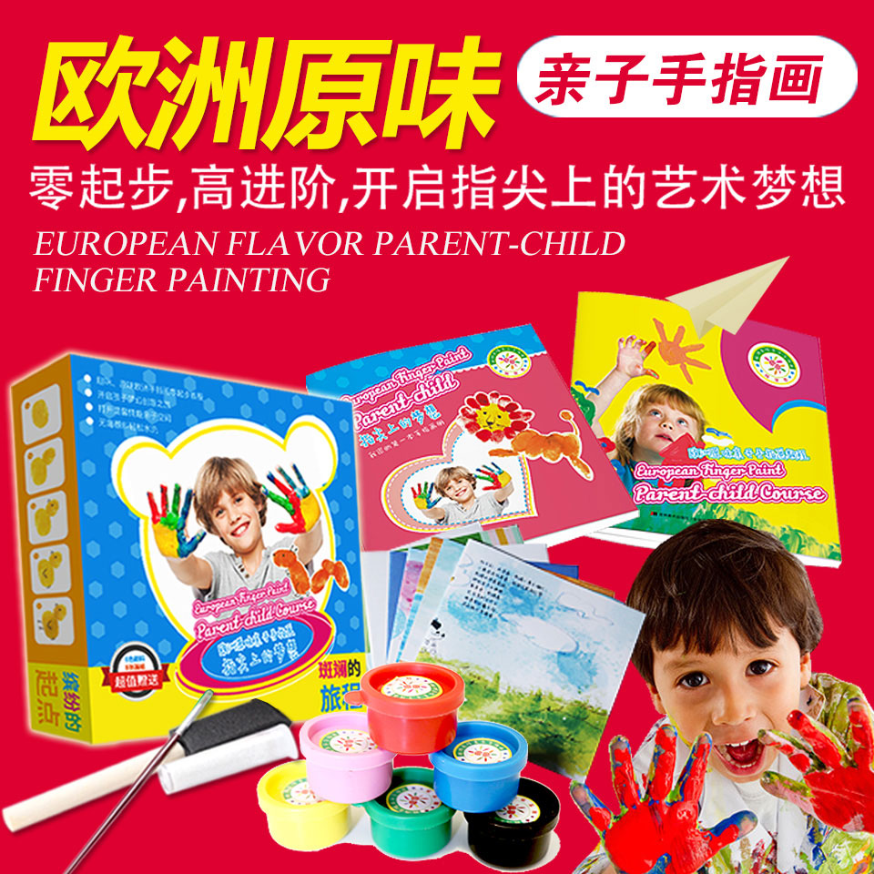 儿童欧洲原味亲子手指画颜料无毒可洗幼儿画画宝宝DIY水彩涂色书