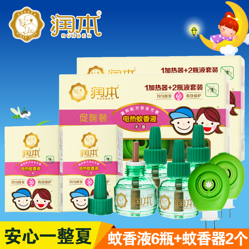 润本婴儿电蚊香液套餐 宝宝驱蚊液 儿童防蚊6瓶+2蚊香器组合 包邮