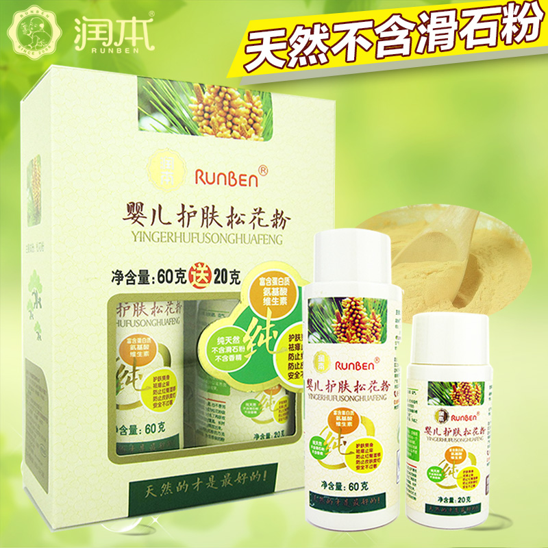 润本婴儿护肤松花粉 宝宝爽身粉痱子粉 不含滑石粉60g加送20g