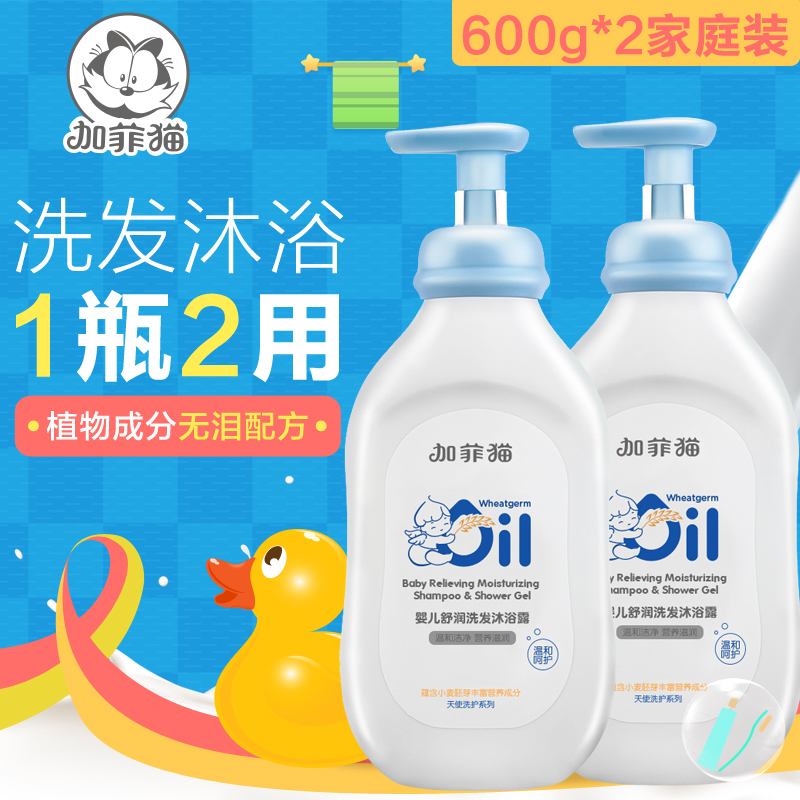 加菲猫宝宝沐浴露婴儿洗发水2合1儿童洗发沐浴二合一 600g*2瓶装
