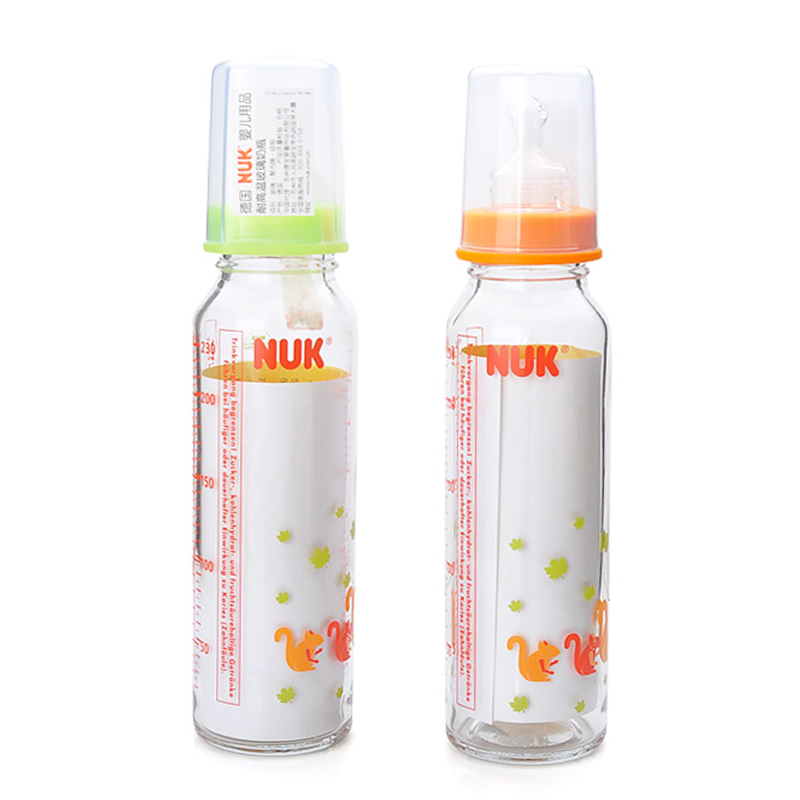 NUK 230ML 标准口耐高温玻璃彩色奶瓶(带1号硅胶奶嘴) 40.745.703