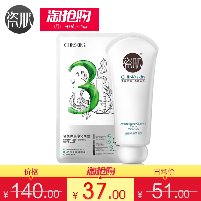 瓷肌中度祛痘产品套装 深层清洁补水控油祛痘粉刺痘印护肤套装