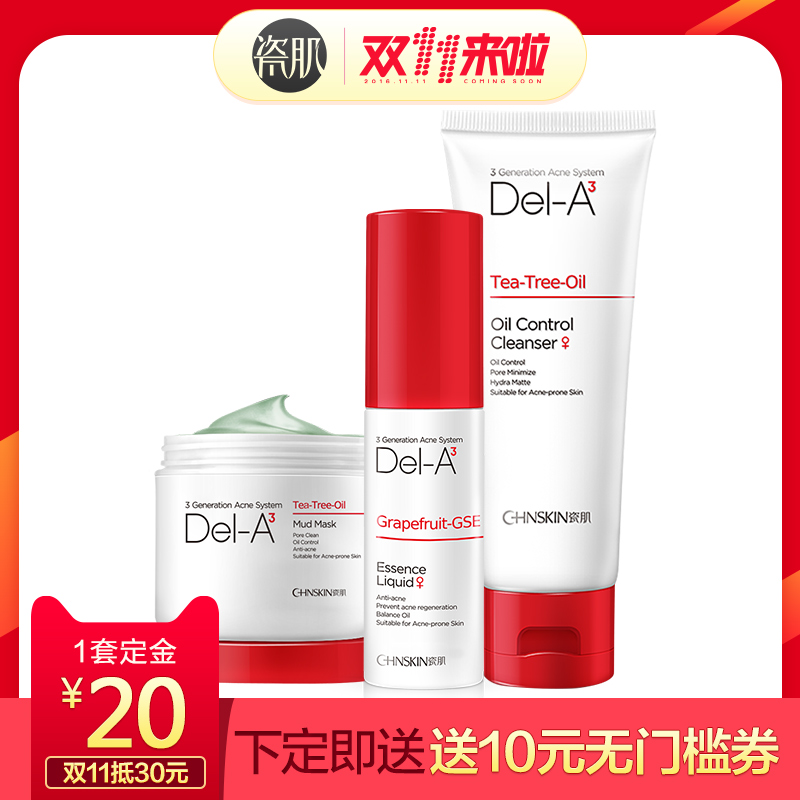 【预售】瓷肌女士祛痘淡印3件套 深层清洁控油祛痘粉刺青春痘套装