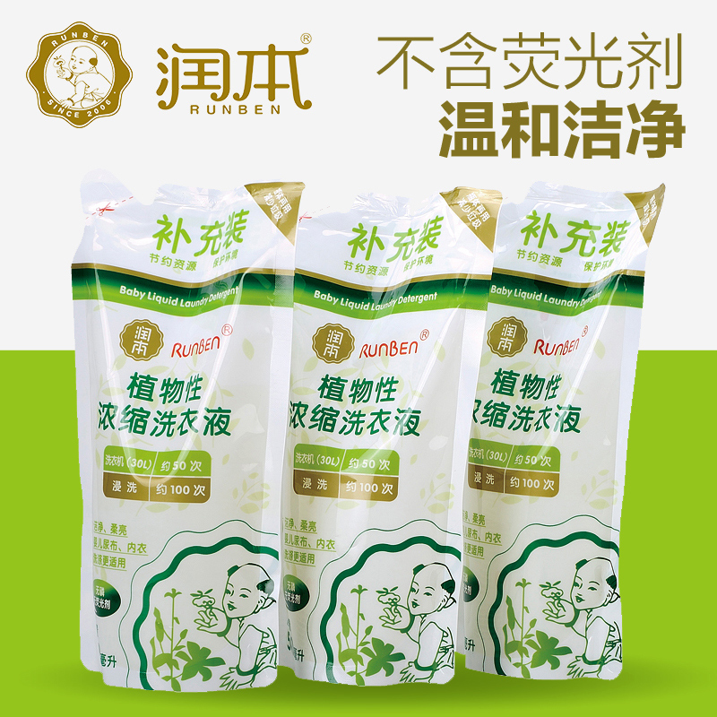 润本/runben 婴儿浓缩洗衣液补充装 宝宝衣物清洁剂温和无刺激3袋