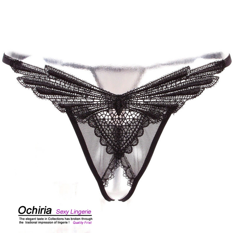 欧姿丽雅性感透明蕾丝开裆丁字裤T裤女士情趣内衣内裤2020黑/红XM