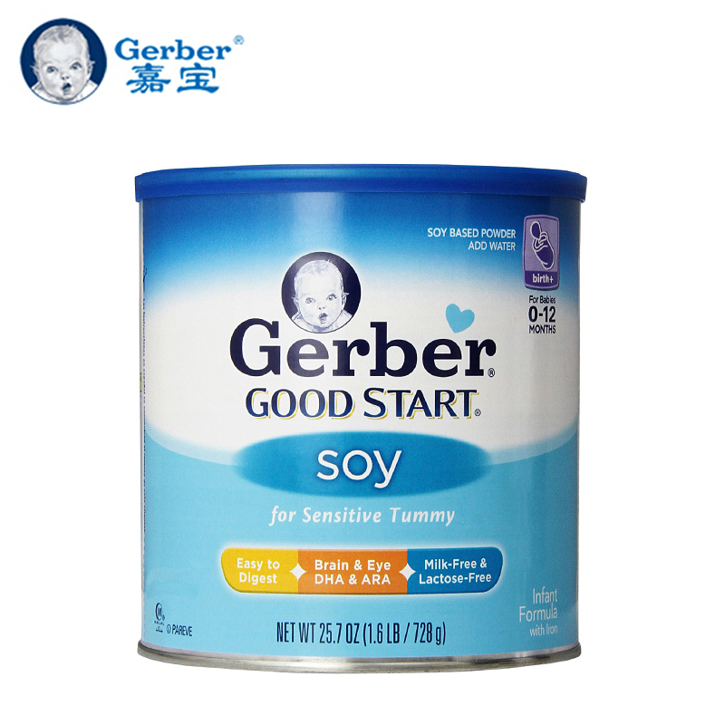 美国 Gerber嘉宝婴儿1段大豆配方抗过敏无乳糖奶粉 728g 0-12个月