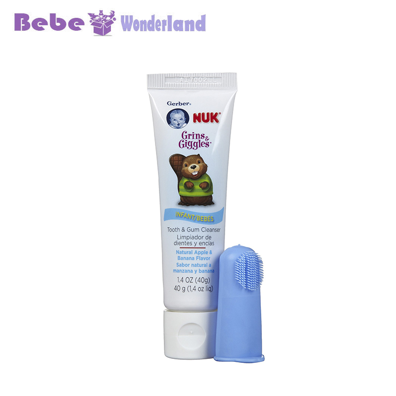 德国NUK Gerber 婴儿牙齿牙龈清洁牙刷和无氟可吞咽牙膏组合
