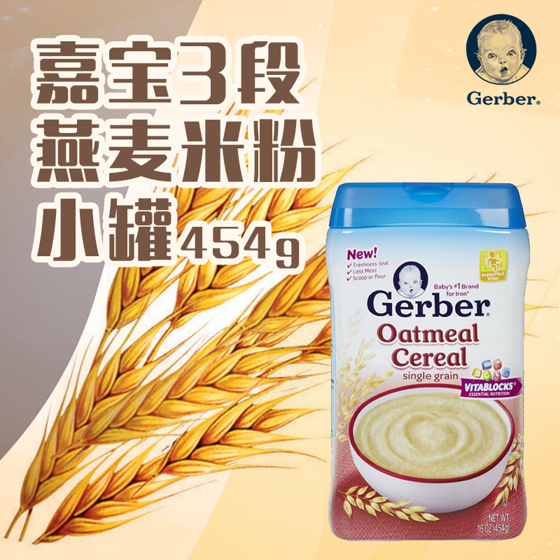 美国Gerber嘉宝婴儿米粉燕麦米糊宝宝辅食3段* 454g*1罐