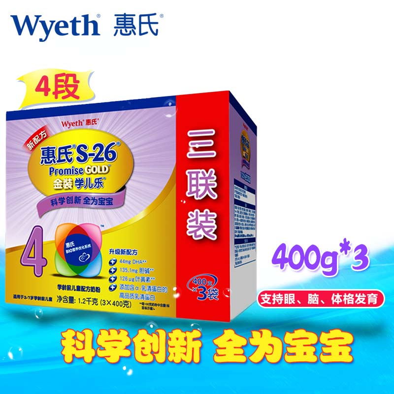 的热门产品惠氏S-26 4段金装学儿乐1200g三联包 宝宝牛奶粉 正品保证