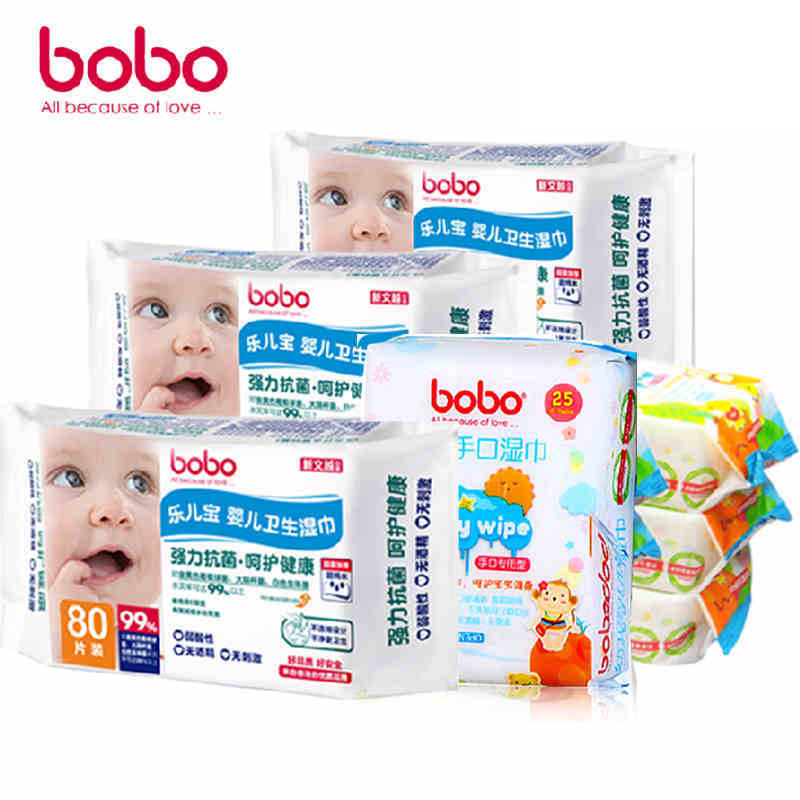 bobo乐儿宝湿巾 婴幼儿手口湿巾 新生儿擦屁股PP抽纸巾8连包420片