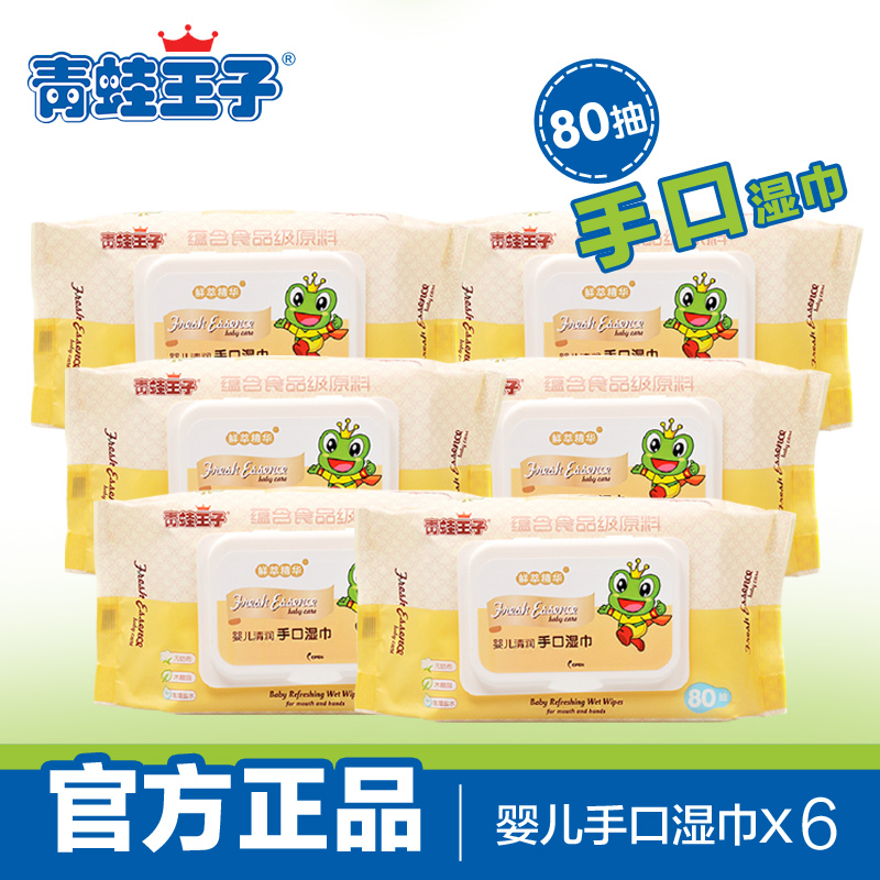 特价 青蛙王子婴儿手口湿巾纸 宝宝bb柔湿巾新生儿湿纸巾 80抽*6