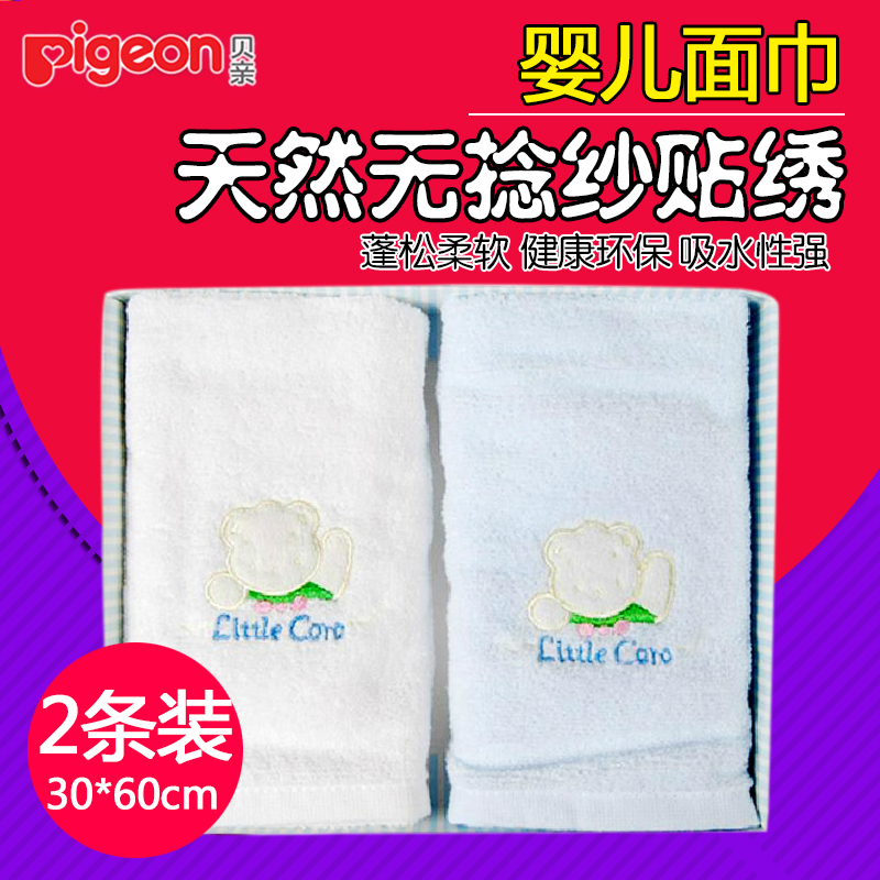 贝亲毛巾新生婴儿无捻纱贴绣面巾儿童宝宝毛巾洗脸手帕两条装LA12