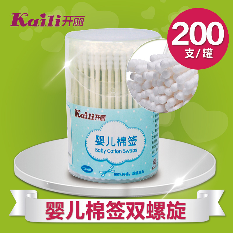 开丽婴儿双螺旋棉签新生婴幼儿便携棉花棒儿童宝宝双头棉签200支