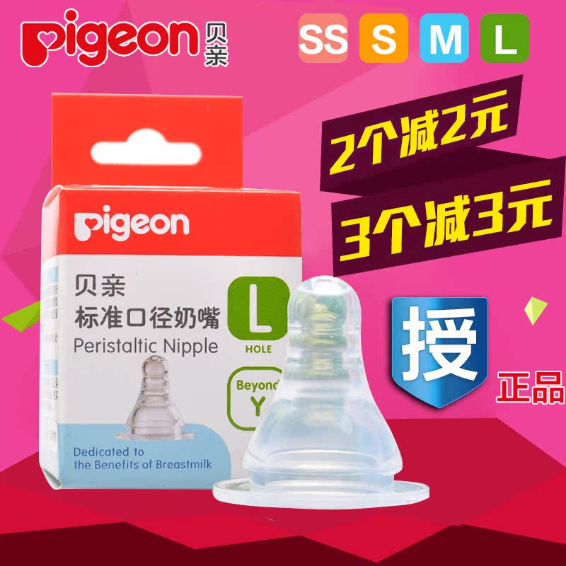 品牌:Pigeon/贝亲 产地:中国大陆 材质:硅胶 适用年龄:3个月以下.3-6个月.6个月以上 包装种类:单个装 奶嘴品类:奶嘴(单卖) 口径大小:标准口径 流速:快 孔型:小圆孔.中圆孔.Y字孔 商品条形码:6931025802598 规格:母乳实感 货号:BA24-27 颜色分类:S(0-3个月宝宝).M(4-5个月以上宝宝).Y(6-7个月宝宝).L(6个月以上宝宝).无包装全新S号奶嘴.无包装全新M号奶嘴 查看全文