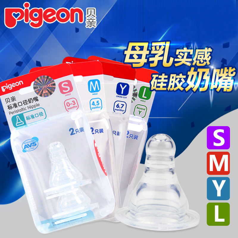 贝亲母乳实感标准口径奶嘴宝宝奶嘴S/M/L/Y新生婴儿硅胶奶嘴2个装