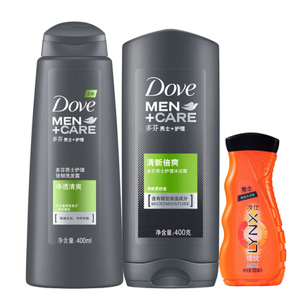 Dove/多芬男士洗发水沐浴露套装净透清爽400ml+清新倍爽400ml
