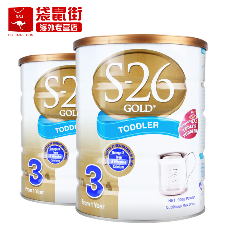 澳洲进口新西兰惠氏S26金装婴儿牛奶粉3段 900g*2罐 保税直邮