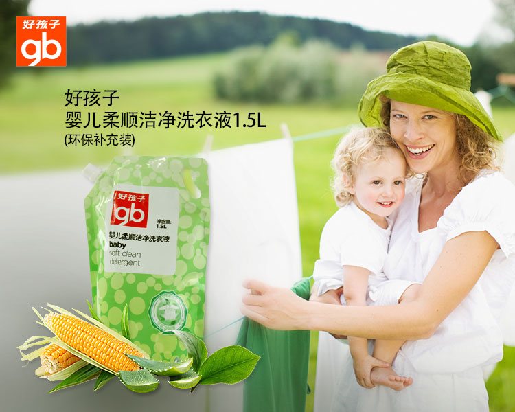 好孩子儿童宝宝婴儿柔顺洁净洗衣液1.5L环保补充装新生婴幼儿专用