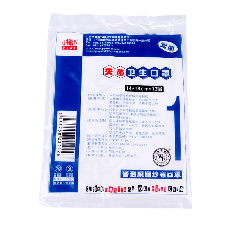 万福灭菌卫生口罩无菌防尘防雾霾骑行保洁工酒店餐厅口罩12层*1只