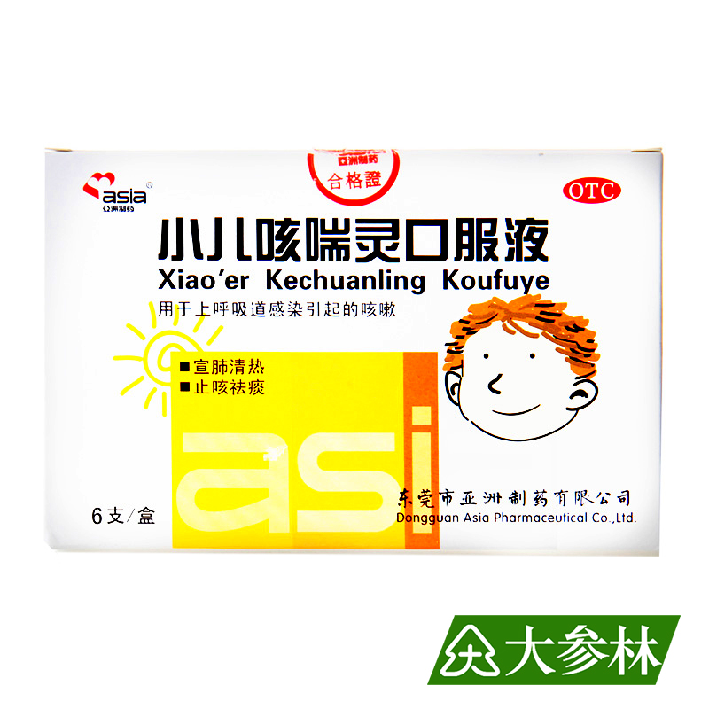 亚洲制药 小儿咳喘灵口服液 10ml*6支/盒 宣肺清热 止咳祛痰 咳嗽