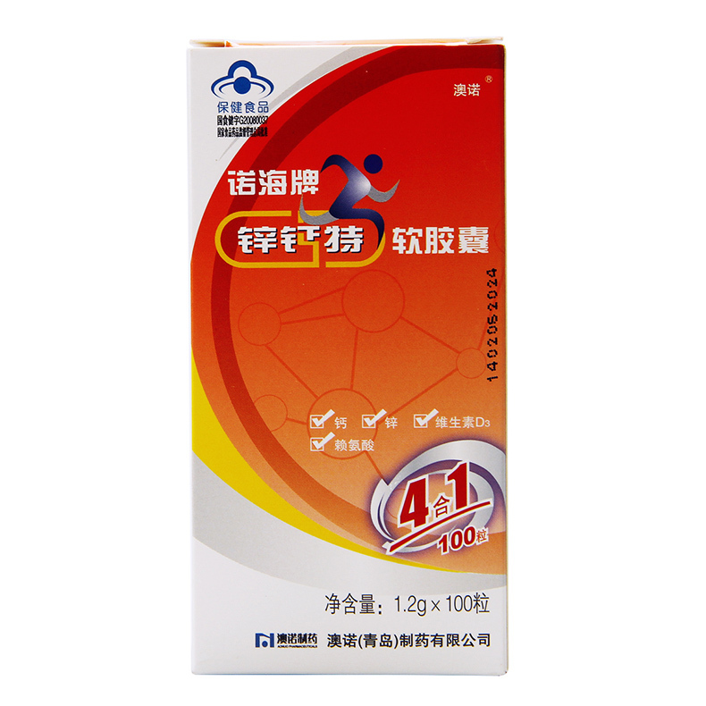 保质期:730 产品剂型:胶囊 是否礼盒装:否 是否进口:否 不适宜人群:儿童/青少年 保健功能:增加骨密度 适宜人群:中老年/老年.成人 具体规格:1.2g/粒*100粒 生产日期:2016年01月18日 至 2016年01月18日 厂名:聊城澳健生物技术有限公司 产品标准号:国食健字G20080037 厂址:聊城市高唐县固河镇固河村东段路北 厂家联系方式:0532-87963379 主要原料:卵磷脂.钙.锌.维生素D 保健食品产品名称:诺海牌锌钙特软胶囊 品牌:澳诺 批准文号:国食健字G20080037 查看全文