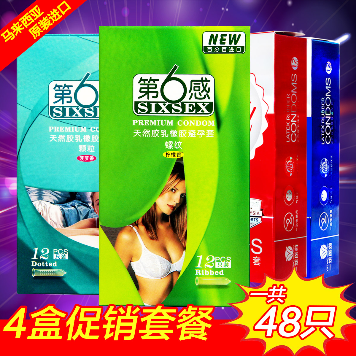 产地:马来西亚进口 材质成分:胶乳 安全套 标称大小:中号(直径33MM,宽度52±2MM) 安全套 功能特点:其他功能 成人用品 香味:其他 安全套 外观形状:其他 颜色:其它颜色 安全套 厚薄:其他 避孕套规格:12只装 品牌:第6感 颜色分类:4盒促销套餐.螺纹柠檬香型.颗粒菠萝香型.超薄平滑香草香型.超薄超滑兰花香型.纤薄平滑蜜桃香型 安全套械(X)字号:国食药监械(进)字2011第2662081号 螺纹 查看全文