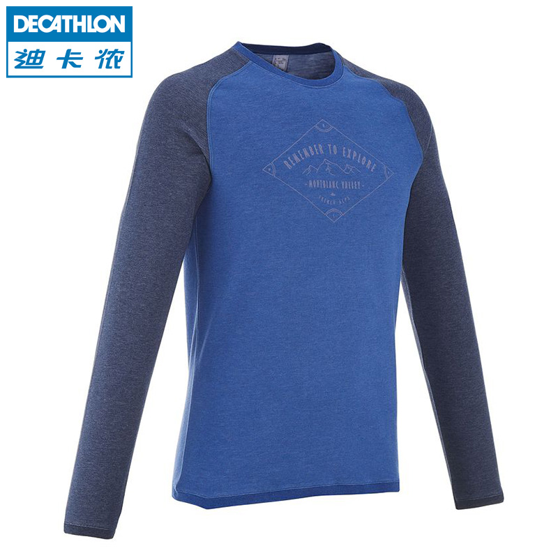 迪卡侬 户外休闲长袖T恤 男 圆领宽松大码上衣 QUECHUA L1
