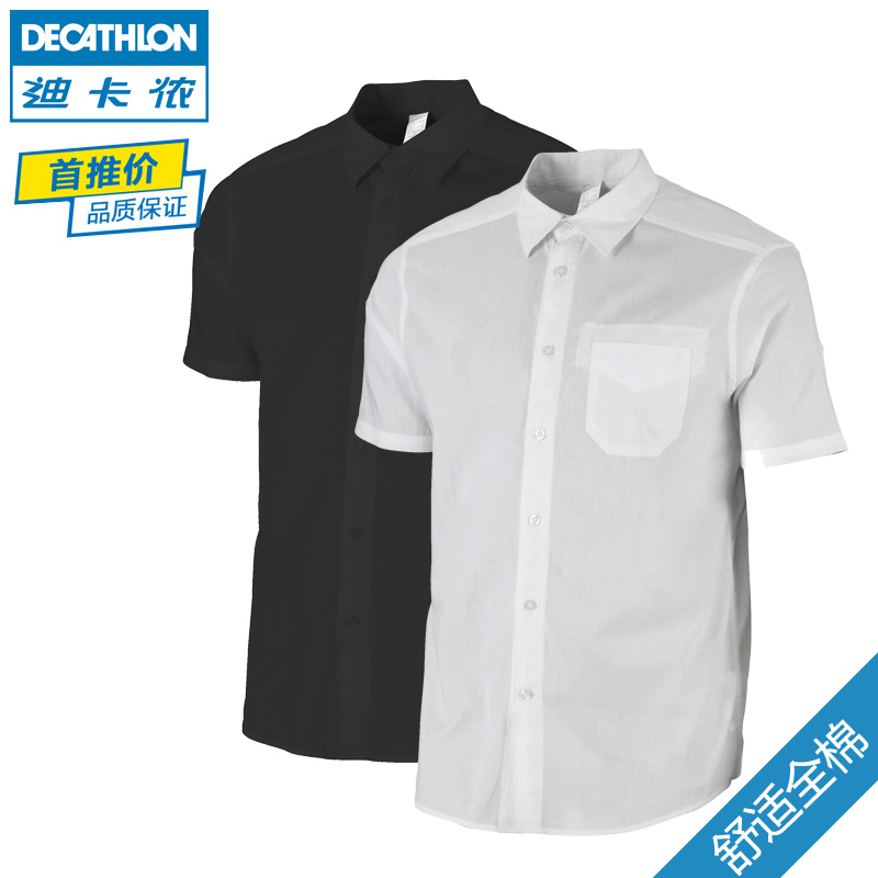 迪卡侬正品 户外衬衫 男士夏季短袖纯色 棉 透气衬衣 QUECHUA L1