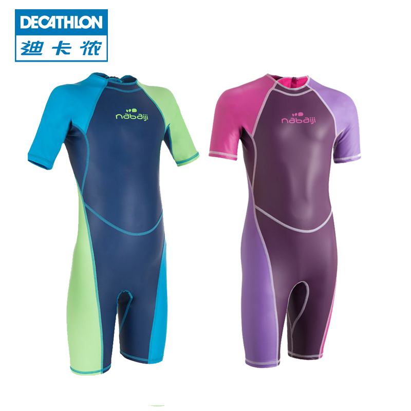 迪卡侬冬季儿童青少年泳衣女孩男孩连体平角泳衣 保暖NABAIJI