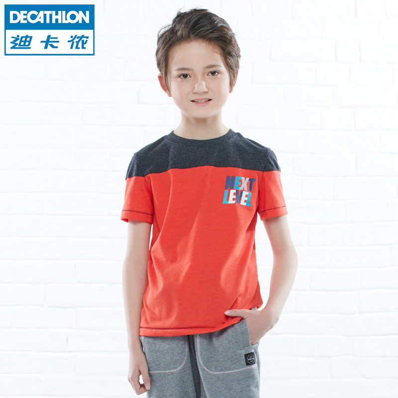 迪卡侬青少年男大童儿童短袖T恤棉质拼色印花春夏DOMYOS KDB