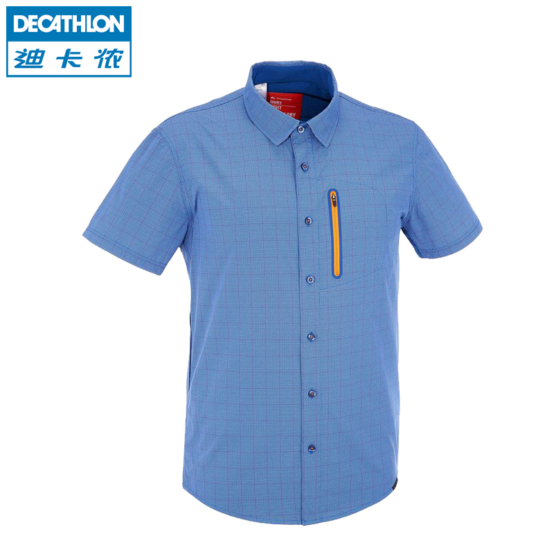 迪卡侬 户外男士快干衬衫细条纹防晒透气舒适抗UV QUECHUA L1