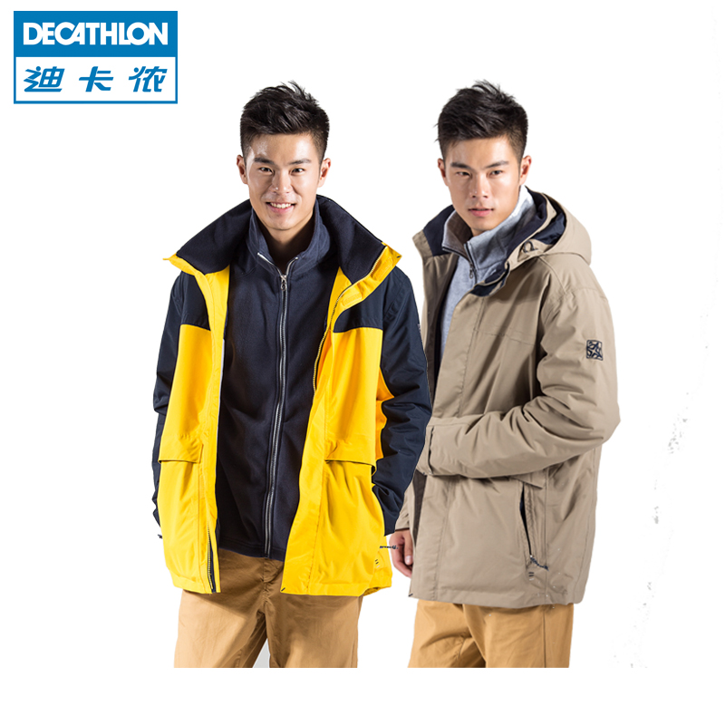 迪卡侬 男式户外夹克 秋冬季防风防水透气冲锋衣休闲外套 QUECHUA