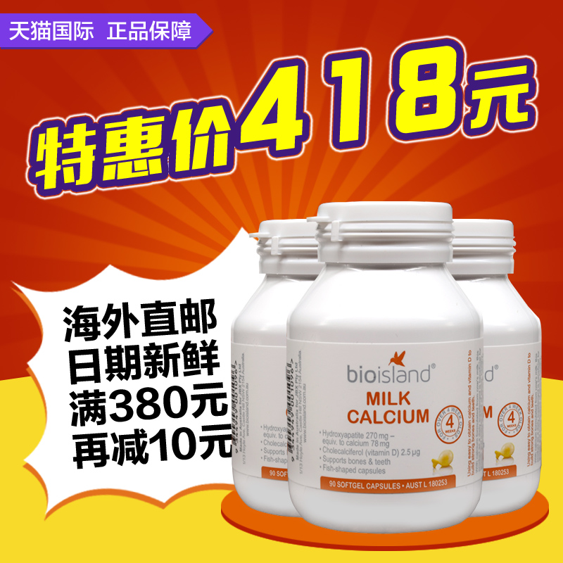 预售澳洲进口直邮BIO ISLAND 婴幼儿牛乳提取液态乳钙90粒*3瓶