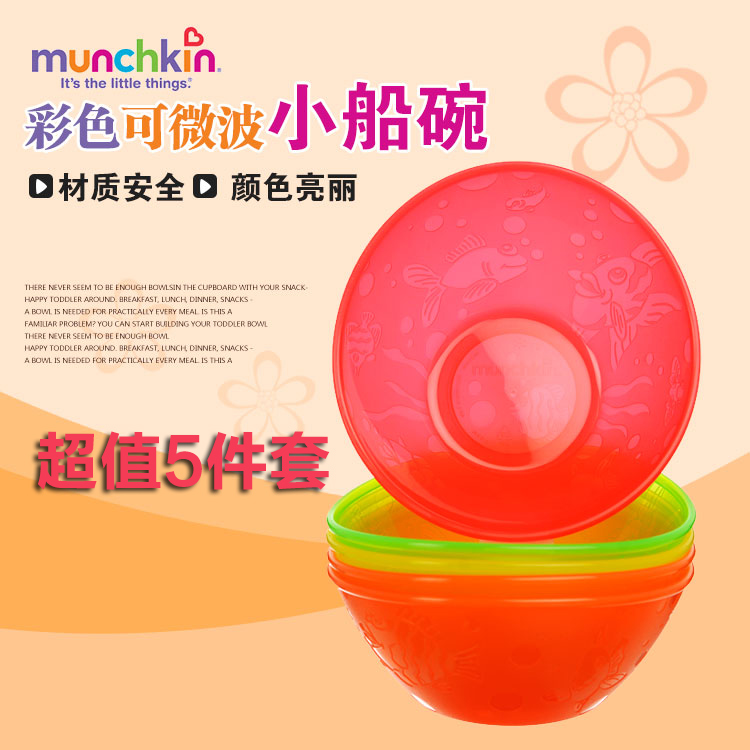 美国Munchkin满趣健麦肯齐小船碗 宝宝碗 儿童餐具婴幼儿彩色 5件