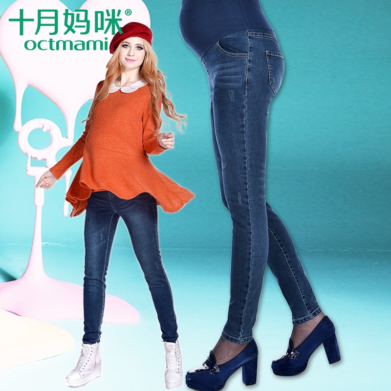 十月妈咪孕妇装 新款春装孕妇牛仔裤高腰托腹裤小脚裤铅笔裤长裤