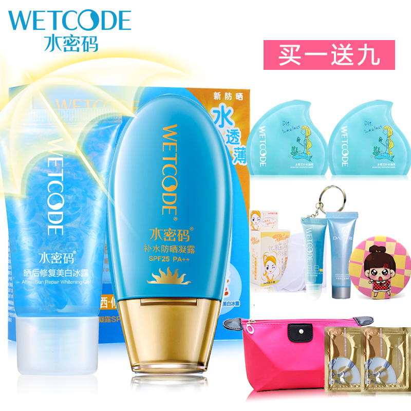 的热门产品水密码防晒霜女补水防晒露套装晒后修复白皙隔离海边防紫外线防水