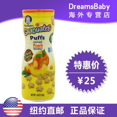 美国直邮 Gerber嘉宝泡芙全麦水蜜桃水果星星饼干 进口宝宝零食