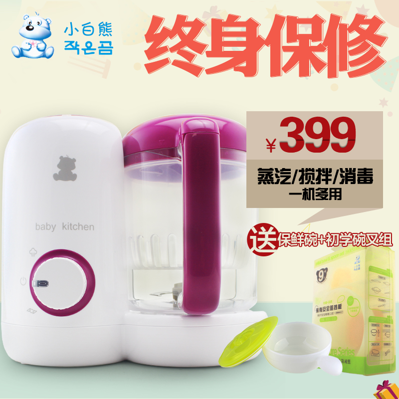 小白熊婴儿辅食机 宝宝食物料理机 蒸煮搅拌电动研磨器HL-0673