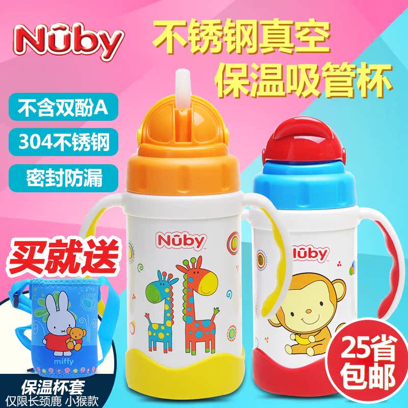 Nuby努比儿童宝宝不锈钢真空背带秋冬保温杯学饮水杯吸管杯鸭嘴杯